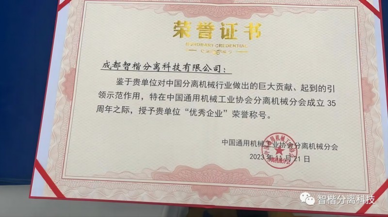 智楷分離科技有限公司榮獲了由中國通用機械工業協會頒發的 “優秀企業” 榮譽獎項,智楷總經理涂金平先生榮獲 “優秀企業家” 榮譽稱號、總工程師樓輝陽先生獲評 “優秀科技工作者” 榮譽稱號。榮獲這三項殊榮,是分離機械協會對智楷過去努力的認可,更是對智楷未來發展的鞭策;是對我公司的高度贊譽,也是對我公司全體員工的熱情鼓勵。我們將繼續為行業的發展貢獻力量,積極參與協會的各項活動,推動行業經濟的繁榮發展。